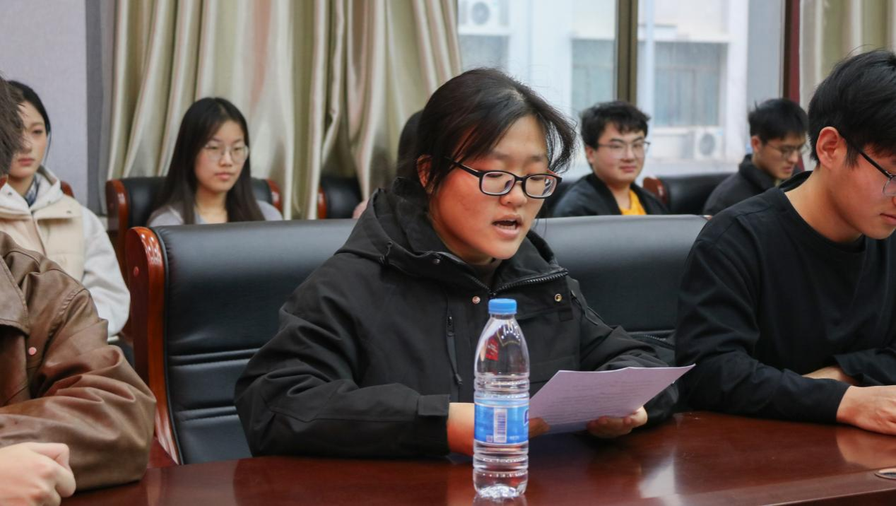 在学生代表发言环节,水经尔雅书会会长吴昌结合自身实践,分享了对《全民阅读促进条例(草案)》的深刻认识。他回顾了在书会中的付出与收获,并代表全体成员表达了推动书会向好发展的坚定决心。吴昌同学的发言立足青年视角,言辞恳切,见解独到,字里行间既洋溢着对阅读事业的赤诚热爱,更展现了当代学子躬身力行、胸怀家国的自觉担当与精神风貌。