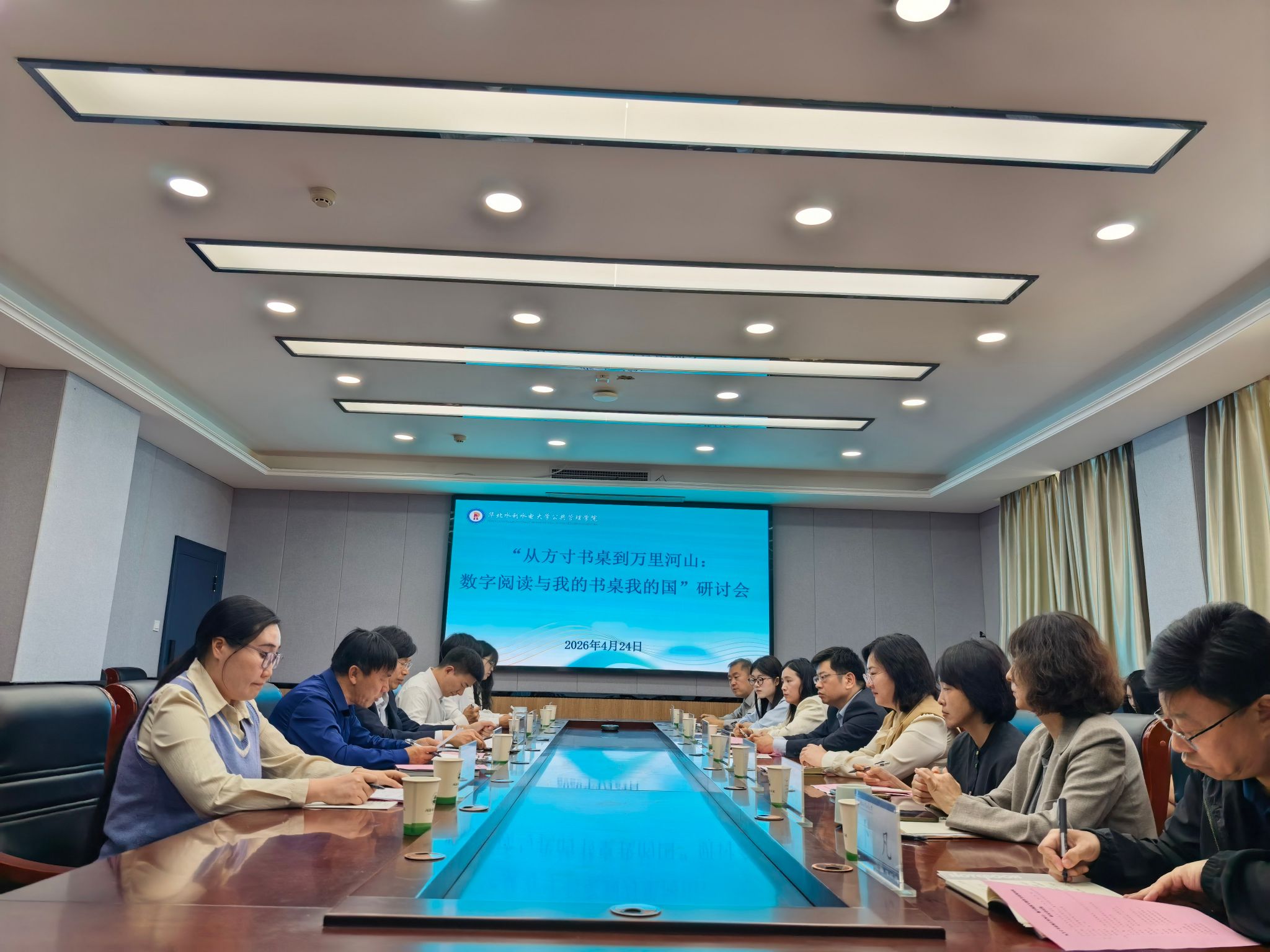 4月24日下午,公共管理学院在7217会议室举办“从方寸书桌到万里河山:数字阅读与我的书桌我的国”专题研讨会。校纪委书记、监察专员卢新初,中原出版传媒集团“百姓文化云”平台、“书香河南”公共阅读平台负责人曹银娜,大河书局副总经理徐馨,中国青年报记者吴双双,以及我校图书馆负责同志和学院领导班子及师生代表共同参会。研讨会由学院党委书记何芹主持。
