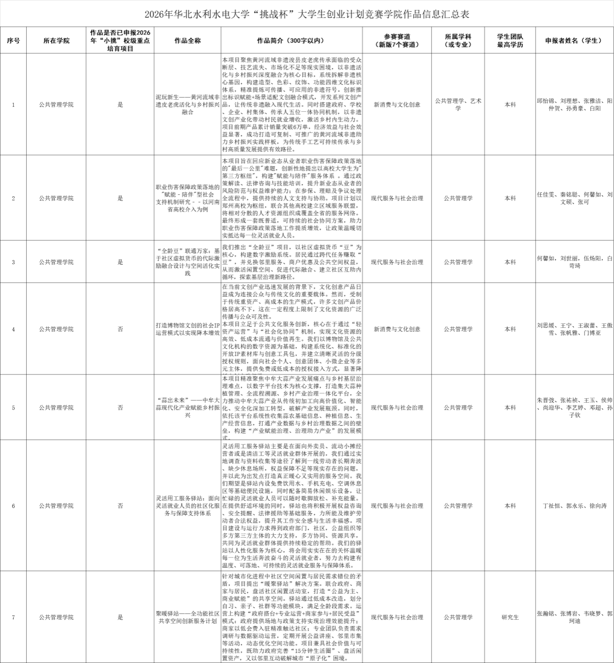 经学院研究决定,推荐以下项目参加“华北水利水电大学2026年“挑战杯”大学生创业计划竞赛终审决赛: