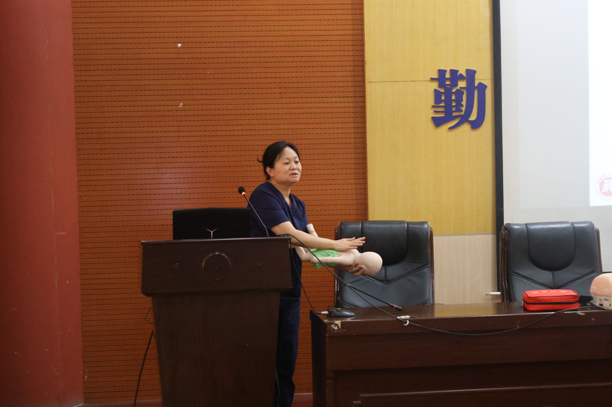 河南省人民医院急诊医学教研室副主任李琳在“心肺复苏急救技术”报告中,结合多年临床经验和真实鲜活的病例,针对学生校园生活场景,特别强调气道异物梗阻(海姆立克法)、心脏骤停(心肺复苏)等急救技能的黄金救援时间与操作规范,并提醒大家:“急救不仅是技术,更是与时间赛跑的责任意识。”借助人体模型,她分步骤讲解心肺复苏的按压位置、深度、频率及人工呼吸技巧。