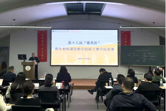 2025年10月30日下午,人居科学与设计学院在龙子湖校区9510举办第十八届“菁英杯”青年教师课堂教学创新大赛学院复赛,各系初赛推选的5位青年教师同台竞技,学院全体教职工共同观摩了比赛。大赛邀请教务处副处长周冠琼、校督导团李以明教授莅临指导,由副院长高长征主持。