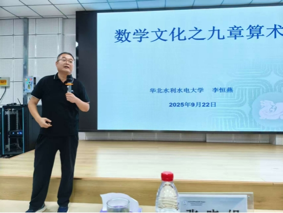 9月22日,学院工会统筹安排工会会员李恒燕副教授,赴华水小学开展“数学文化之《九章算术》”讲座,该校全体数学教师参与。此活动是工会聚焦教职工专业成长的举措,助力教职工拓宽教学视野。讲座中,李恒燕老师以“经典原文+生活案例+直观解读”,解析《九章算术》“方田”“粟米”“少广”等章节,挖掘其与小学数学教学衔接点,结合“盈不足”章分享古人智慧在现代教学的应用。互动环节,他解答华水小学教师“经典融入课堂”等问题。参与教师称讲座兼具深度与实操性,李恒燕老师也通过交流明晰基础教育教学需求,同时有效激发教职工教研积极性。