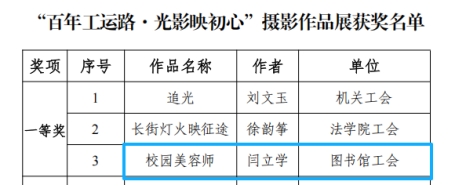 此次所获得的荣誉,既是对教职工才华与努力的肯定,也是图书馆文化建设成果的集中体现。未来,图书馆工会将继续加强文化建设,鼓励师生积极参与各类文化活动,让书香与艺术之花在校园中绽放得更加绚丽多彩,为校园文化的发展注入新的活力。
