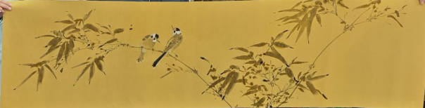 理论分享结束后,连俊洲现场挥毫示范花鸟画创作。笔墨流转间,成竹在胸,白头翁灵动之姿跃然纸上,他边创作边讲解墨竹及飞鸟的用笔、用墨、着色的技巧要点,将理论知识转化为直观的艺术实践,让师生们近距离感受传统笔墨的魅力。