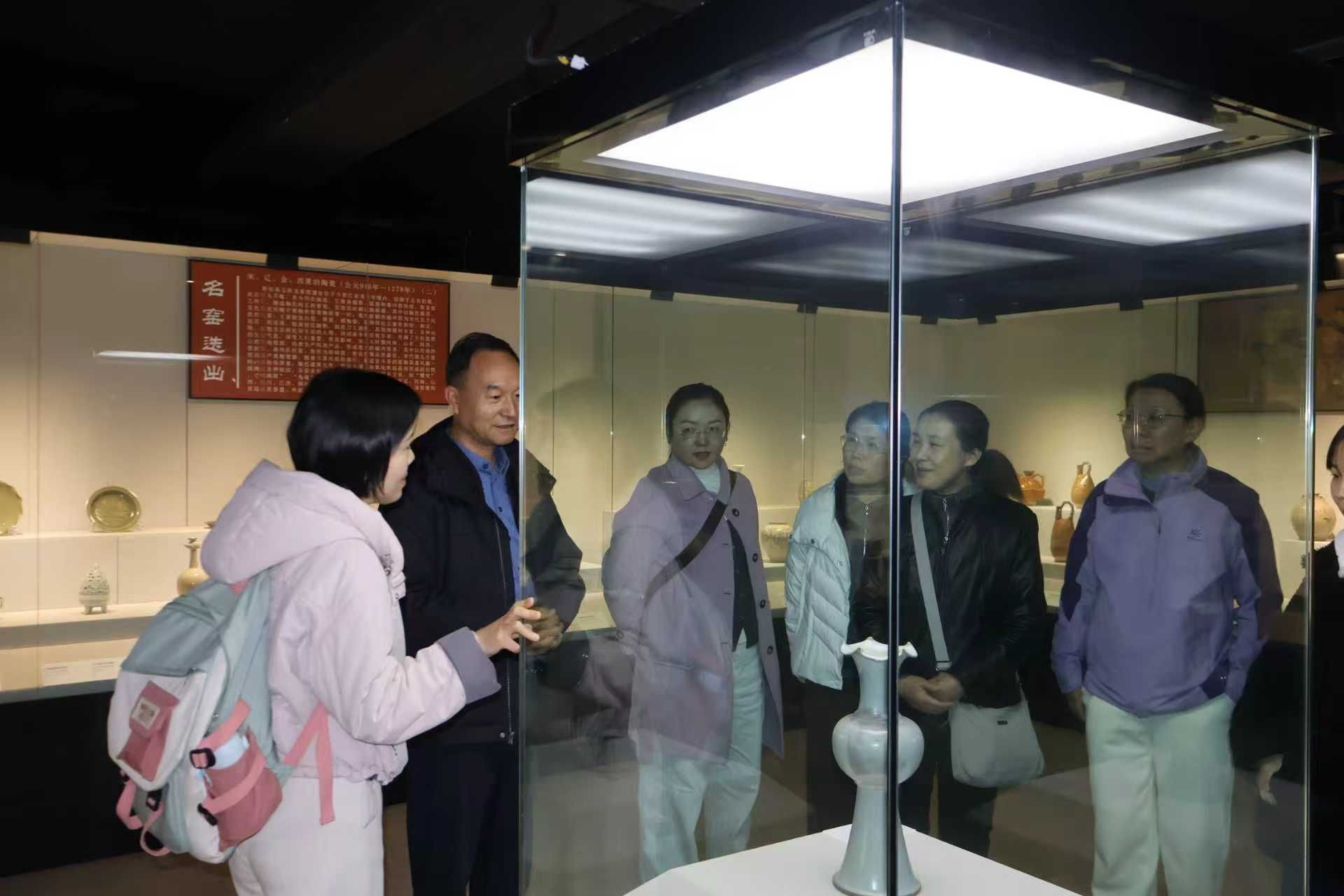 河南财经政法大学博物馆内,一件件造型精美、釉色温润的瓷器展品令人目不暇接,每一件瓷器都承载着古人的审美情趣与匠人精神,见证着中华瓷器文化的传承与发展。教职工们细细观赏瓷器的纹饰、胎质与工艺,在感受传统艺术魅力的同时,深刻认识到文化遗产保护对于增强民族自信的重要意义。