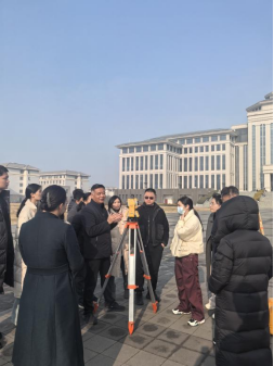 12月19日上午,首场“实验仪器规范化操作示范”在图书馆南广场举行。郭贵海、袁天奇两位教师就水准仪、全站仪等仪器开展全流程演示,并围绕教学关键要点与常见问题,与参训教师深入交流。