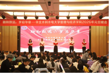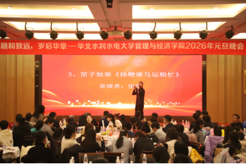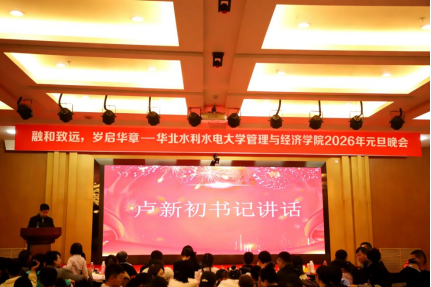 岁聿云暮,新元肇启。2025年12月27日晚,华北水利水电大学管理与经济学院2026年元旦晚会在热烈祥和的气氛中隆重举行。校纪委书记、监察专员卢新初出席晚会并致辞。原副校长施进发、苏喜军,学校相关职能部门负责人,相关学院负责人以及学院党政领导班子成员、各系教师代表、本硕博学生代表、MBA学员欢聚一堂,共迎新年,共叙情谊。