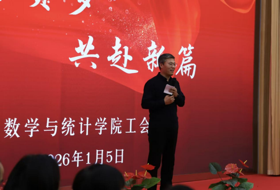 时光荏苒,岁律更新。1月5日下午,数学与统计学院“2026年迎新年联欢会”顺利召开。学院领导班子全体成员、全体教职工及学生代表齐聚一堂,载歌载舞共迎新春佳节,现场洋溢着喜庆祥和的浓厚氛围。