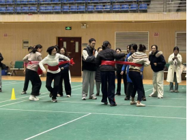 活动现场气氛热烈,加油声、欢笑声此起彼伏。文体会堂内,精心设计的趣味项目兼具竞技性与协作性,既有速度的角逐,也有技巧的较量,更考验团队的默契配合。人居科学与设计学院的女教工们精神饱满、活力四射,在“腰缠万贯”“跳大绳”“合力搭建”等多个比赛项目中团结协作、奋勇争先。