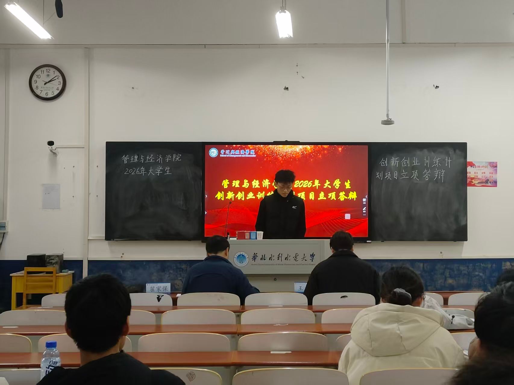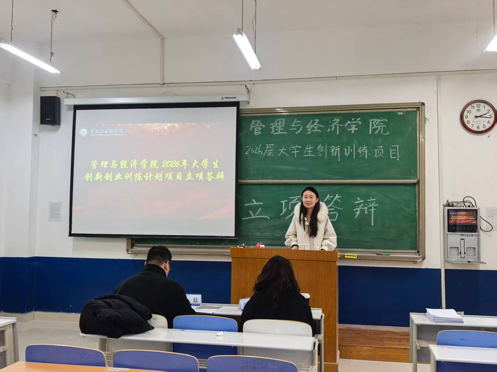 12月28日14时,管理与经济学院2026年度创新创业训练计划项目立项答辩工作正式开展。本次答辩分设两个会场,7104教室、7106教室同步开展答辩评审,共计28个申报项目(7104教室14项、7106教室14项)同台展示。其中创新训练类项目20项,创业训练与创业实践类项目8项,共同接受学院专业教师评审组的考评。参与答辩的28个项目覆盖三个年级,其中大一3项、大二14项、大三11项,充分展现了管经学子的创新思维与创业热情。