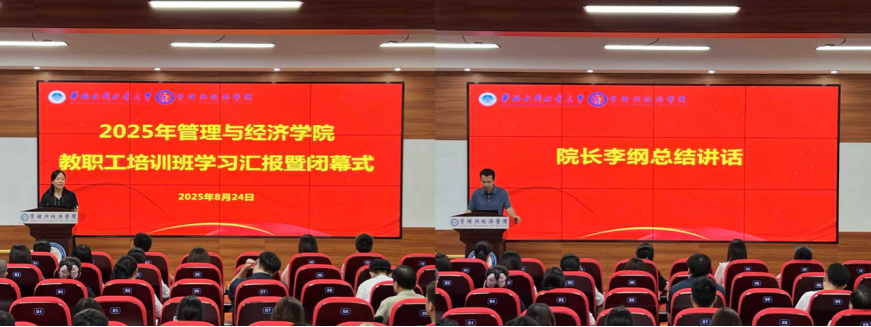 为全面传达学校第八届教职工代表大会第四次全体会议精神,切实推动学院全体教职工深入贯彻落实会议精神,确保教师分类发展改革方案落地见效,8月23-24日,管理与经济学院举办了2025年教职工培训班。