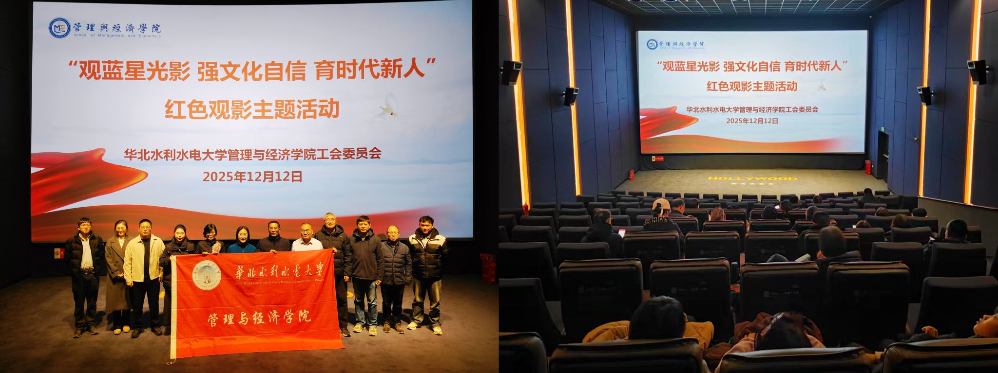 为厚植爱国主义情怀,强化文化自信根基,切实将航天精神融入育人实践,12月12日,管理与经济学院工会组织教职工开展“观蓝星光影 强文化自信 育时代新人”红色观影主题活动,集体观看我国首部太空实景拍摄影片《窗外是蓝星》,在航天叙事中感悟初心使命,凝聚育人力量。