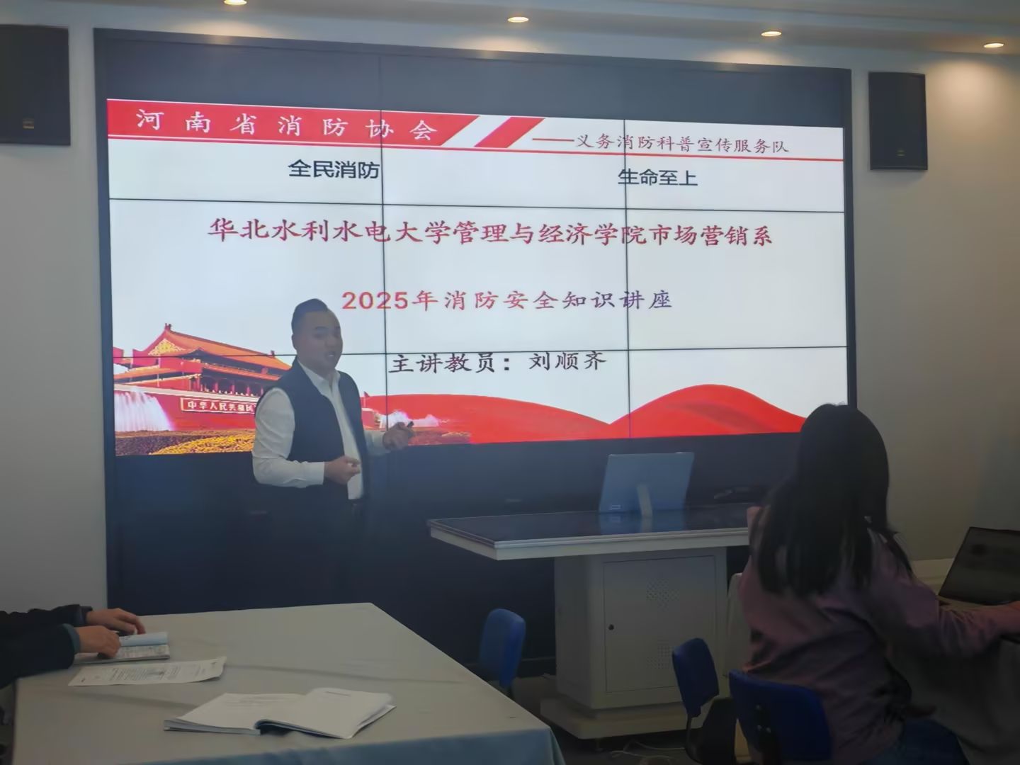 为深入贯彻国家总体安全观,落实校园安全领域的国家战略部署要求,切实将安全发展理念融入教学科研与日常管理全过程,强化市场营销系师生的消防安全意识与应急处突能力,2025 年 11 月 27 日,管理与经济学院市场营销系专题组织开展了消防安全主题学习会议。本次活动特邀消防领域教员刘顺齐担任主讲,系内教职工和学生代表共同参与学习。