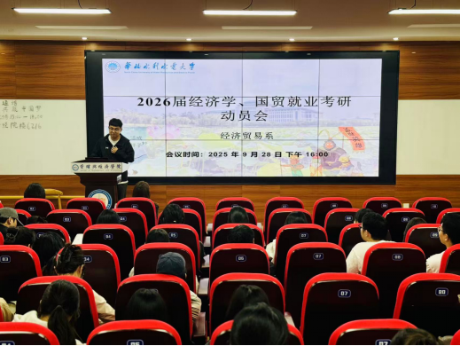 为精准助力2026届毕业生做好职业发展规划,引导毕业生树立正确的择业观与就业观,全面提升求职竞争力,经济贸易系于9月28日下午在6112会议室召开2026届毕业生就业动员会。会议由系主任刘叶主持,副主任李浩,教师代表周培红、赵钊以及2026届经济贸易系毕业生参会。