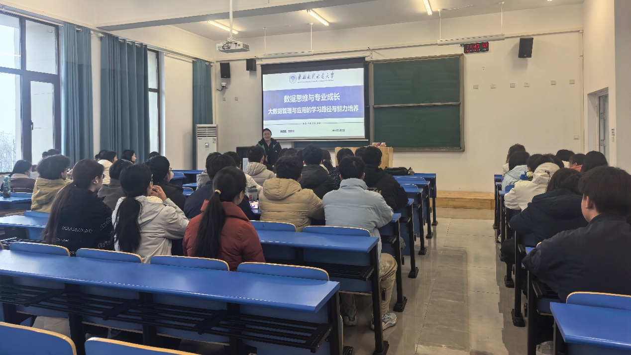 为引导大一学生明确学习目标、科学规划大学生涯,3月2日,我系孙蓓蓓、李紫君两位老师前往江淮校区,与2025级大数据管理与应用专业大一学生开展主题班会,并围绕《数据思维与专业成长:大数据管理与应用的学习路径与能力培养》作专题讲座,与同学们面对面交流答疑。