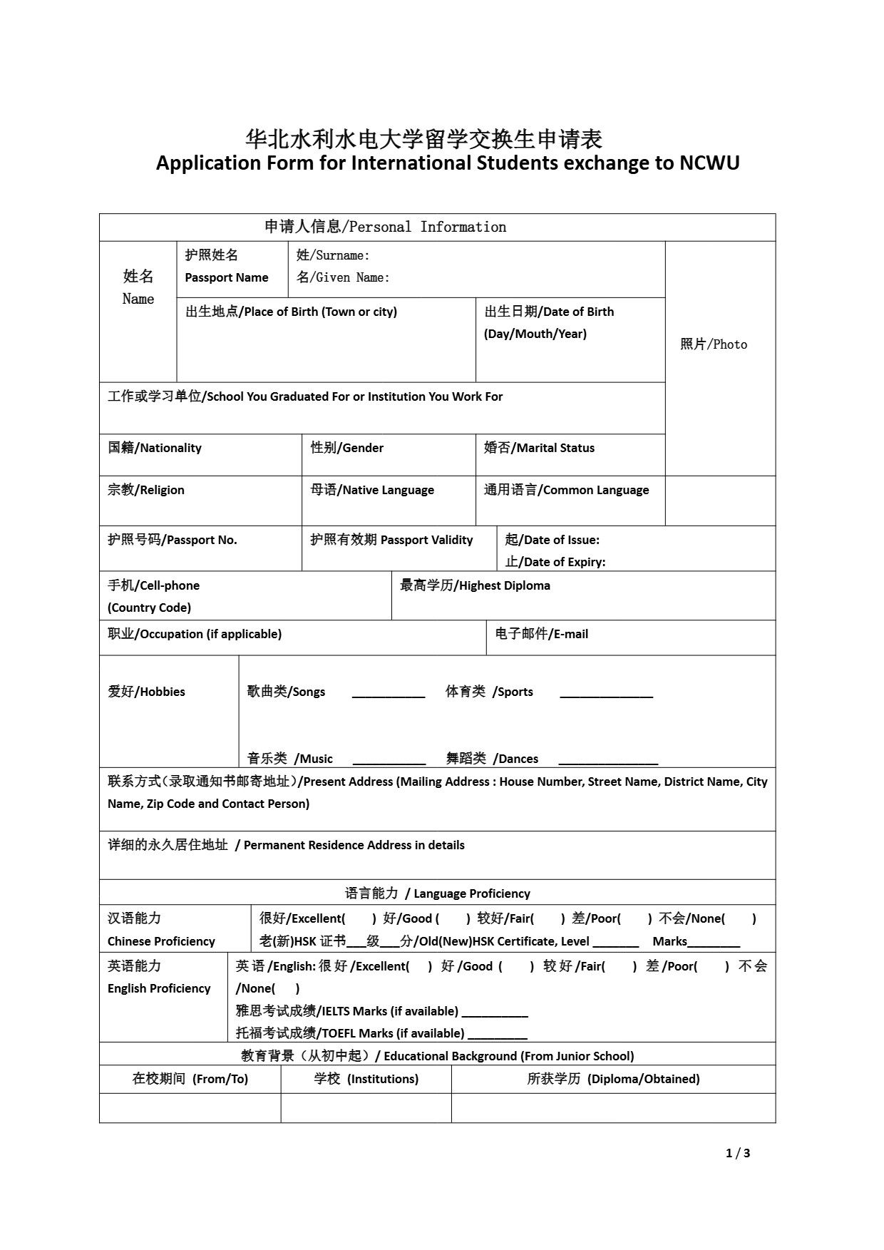 华北水利水电大学留学交换生申请表.pdf