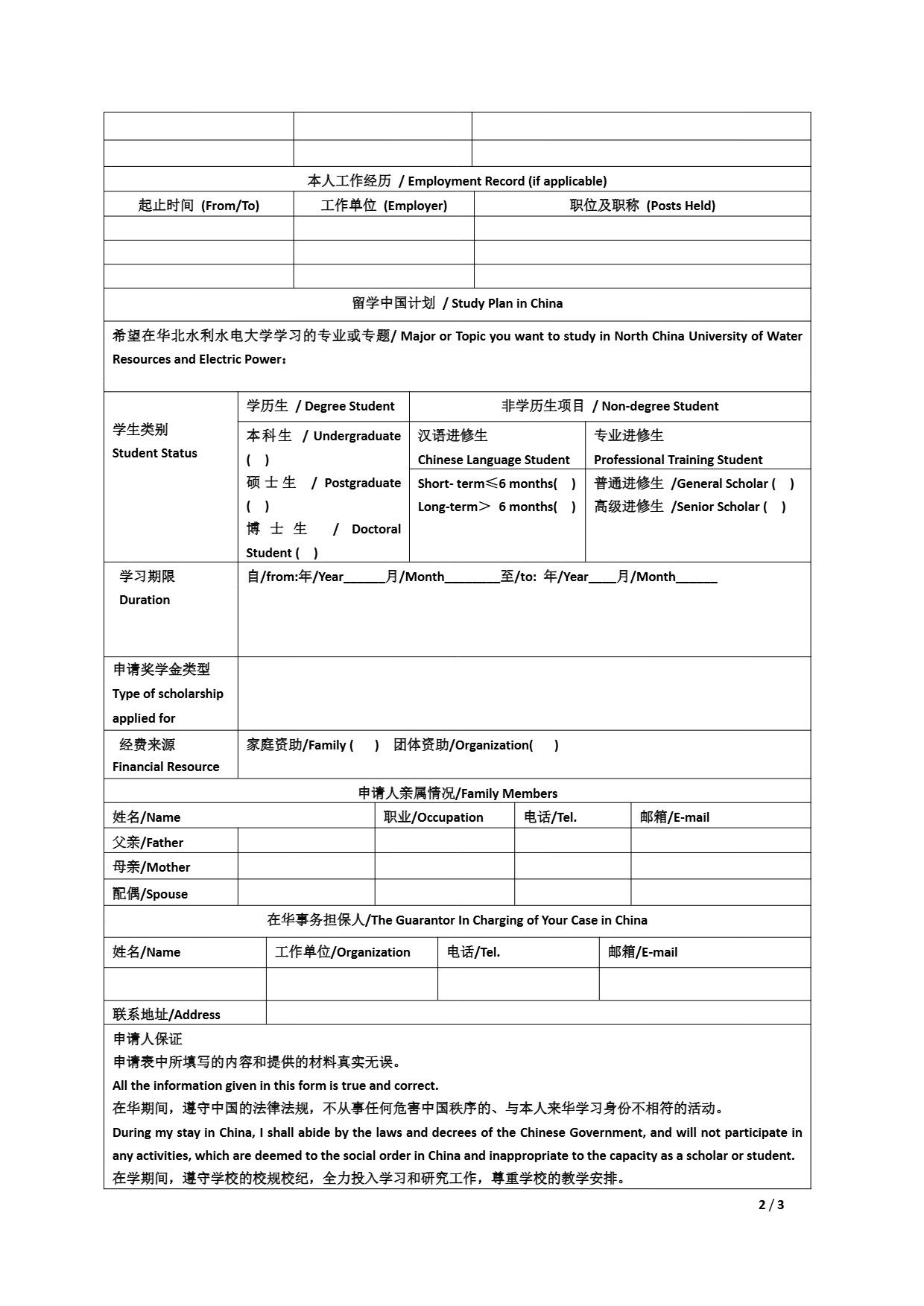 华北水利水电大学留学交换生申请表