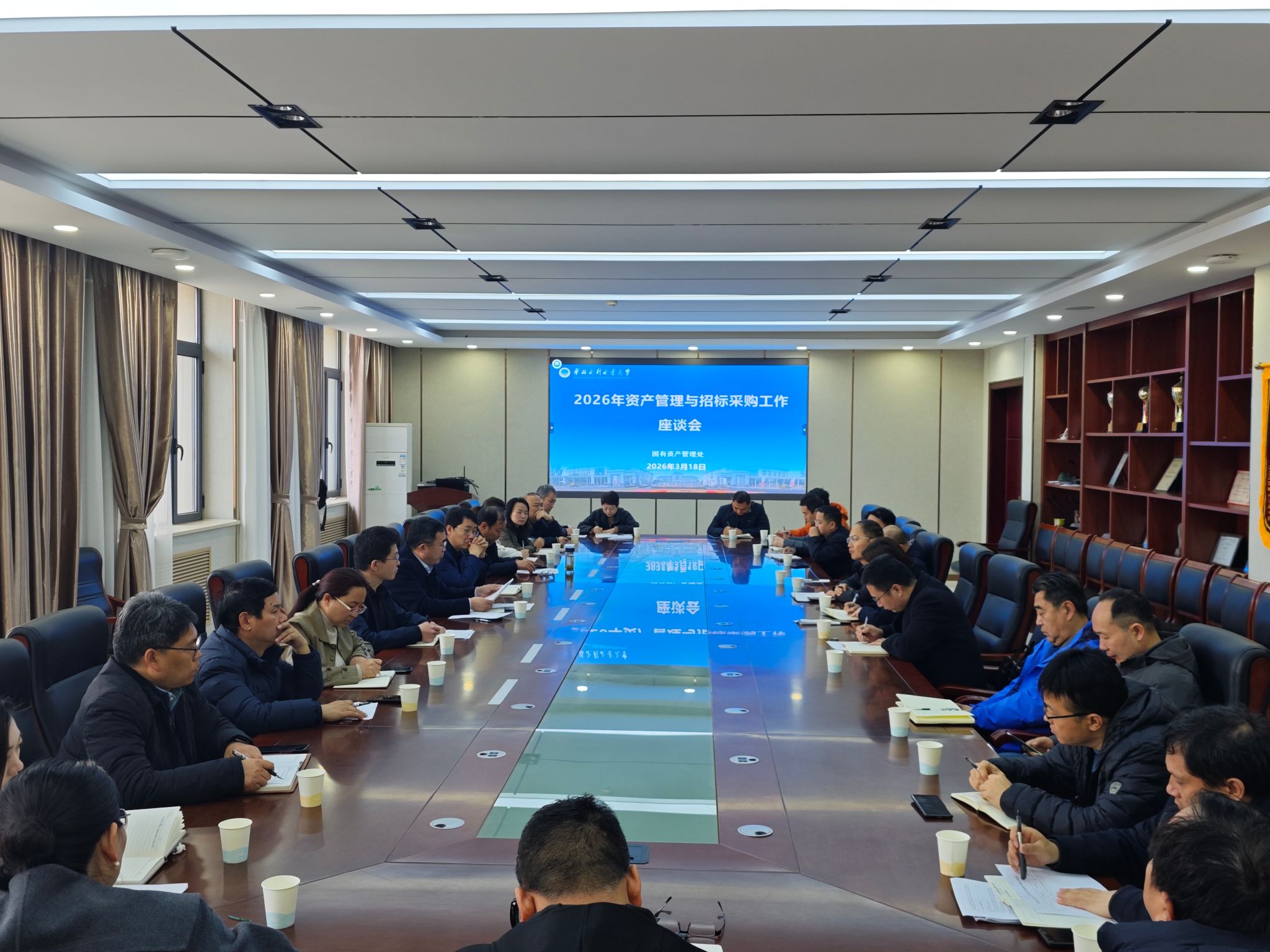 为深入开展树立和践行正确政绩观学习教育,进一步提升治理效能和服务水平,3月18日上午,我校组织召开了2026年资产管理与招标采购工作座谈会。国有资产管理处处长李权才主持会议,相关单位资产、采购工作分管领导及国有资产管理处全体工作人员参加会议。