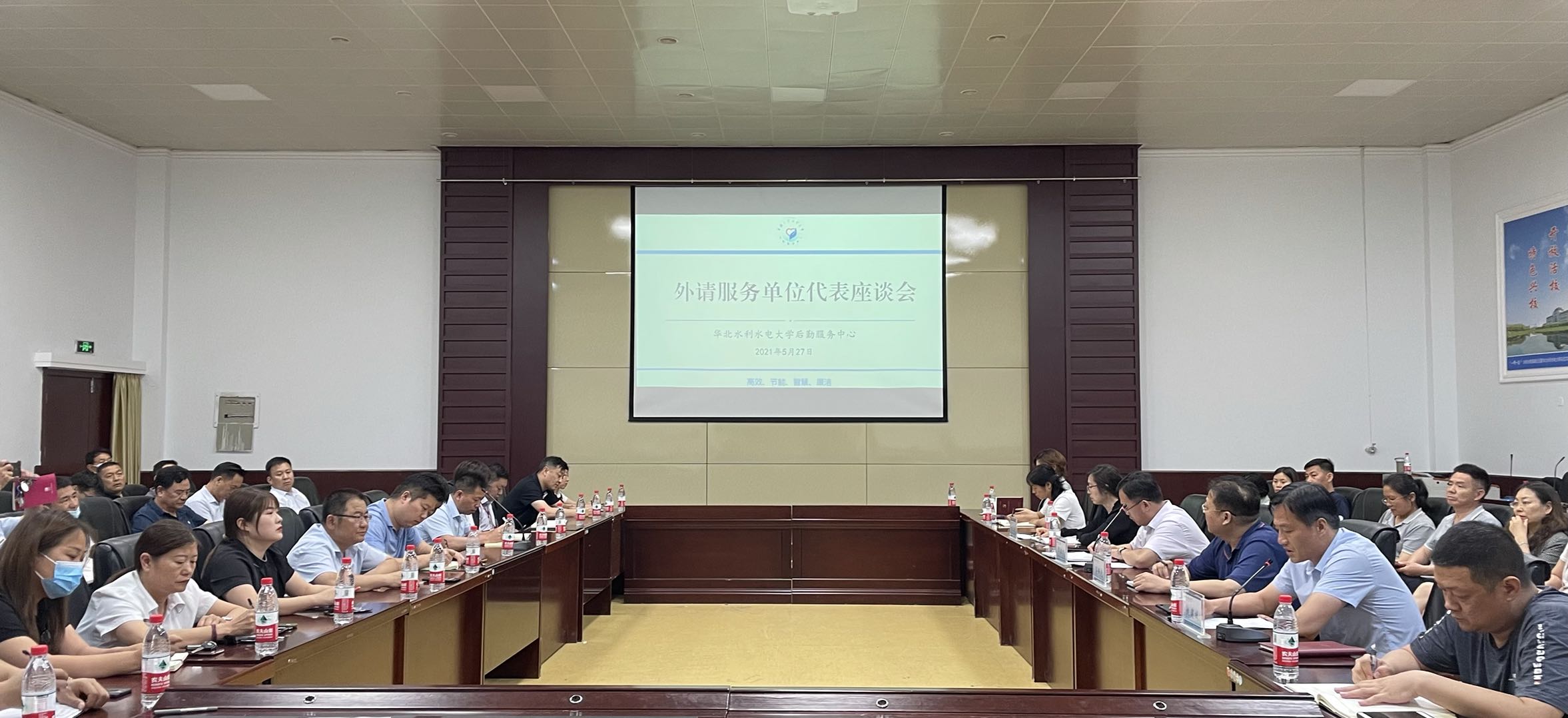 5月27日下午,后勤服务中心在第四会议室召开外请服务单位代表座谈会,36家外请服务单位法人、项目经理,后勤服务中心班子成员及相关科室人员参加会议。