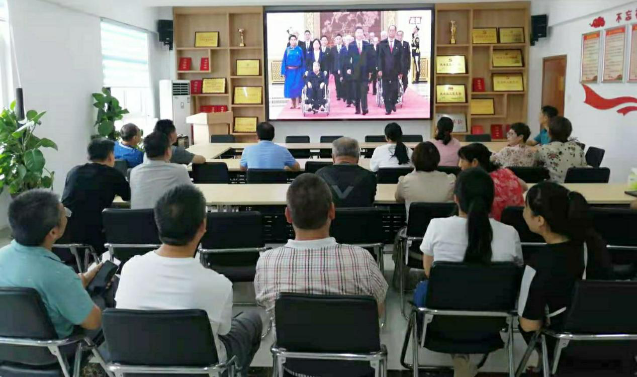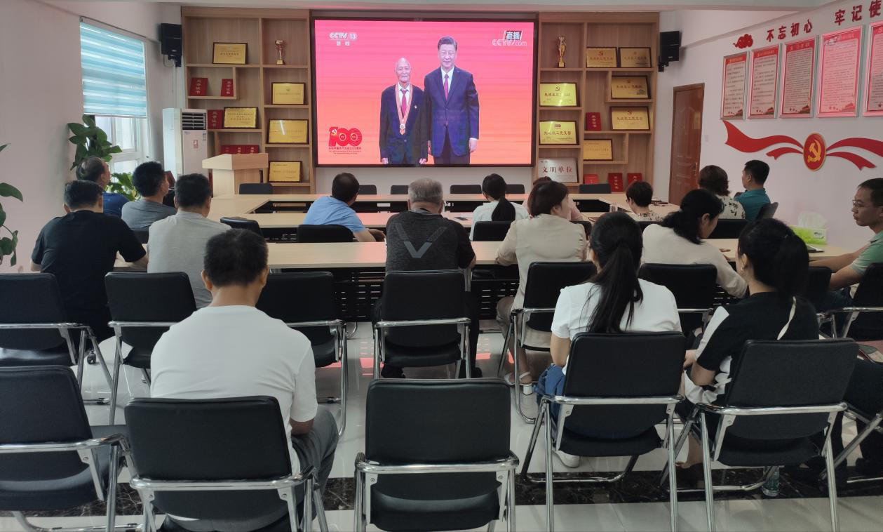 6月29日上午10时,“七一勋章”颁授仪式在人民大会堂隆重举行,中共中央总书记、国家主席、中央军委主席习近平颁授“七一勋章”并发表重要讲话。后勤服务中心全体党员集中收听观看了此次颁授仪式。