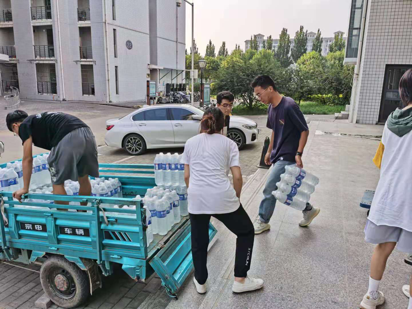 当天下午5时许,这位校友将3500个口罩送至学校,并称还有消毒液、口罩将于7月26日下午送达。看到李君等正在繁忙地向周转房受灾教工家中送纯净水,这位校友二话不说,加入送水队伍,待晚上6点30分全部送水任务完成后悄声离开。7月26日下午3时,校友再次来到学校,送来30桶共计750升84原液和2万个口罩。7月25日,该校友在物资入库登记单上签名为“学生”,7月26日再次入库签字,在李君的再三询问下,校友才说,他是管理与经济学院毕业生,叫张淼。