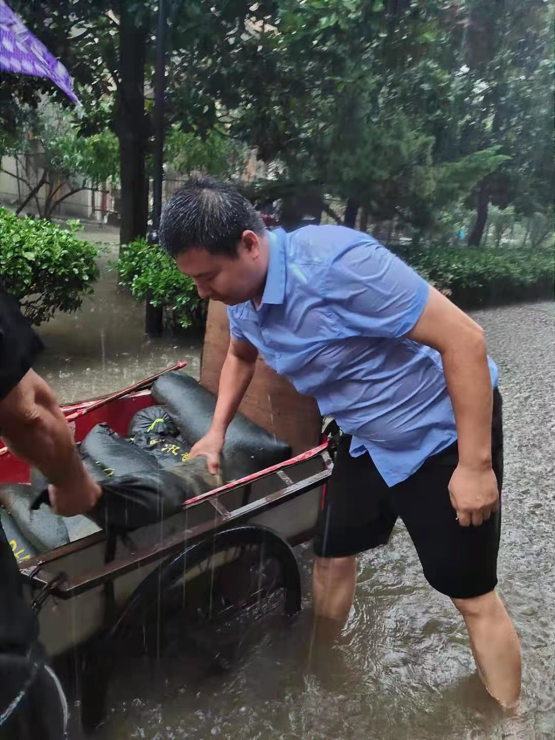 因为使命,所以担当。7月18日汛情发生后,后勤服务中心全体干部职工一直坚守在防汛救灾一线,他们把雨声当警报、把汛情当命令,以战时状态、战时标准挺身在前,凝聚力量,全力以赴保障华水师生的生命财产安全。面对暴雨、面对险情,后勤人勇敢地站出来、冲上去,向险而行,冲锋在前,彰显了本色,照见了初心,体现了担当把人民至上、使命至上刻在了防汛减灾第一线,把践行初心、担当使命落实在后勤服务保障岗位上。