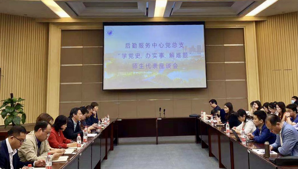 4月30日上午,后勤服务中心在两校区同时召开“学党史、办实事、解难题”座谈会,征求师生意见,切实为师生办实事、解难题,推进党史学习教育深入开展。