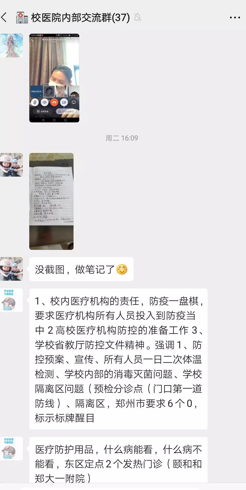 “走出去”充电参加培训。3月10日下午,校医院全体医务人员参加了由郑东新区社会事业局组织召开的“高校预防新型冠状病毒肺炎视频培训会议”。培训围绕教育系统新冠肺炎疫情防控技术这一主题,就开学前、开学后高校校医院如何开展医疗防控工作做了指导,针对出现疑似感染病例应如何处置、医务人员从接诊流程、个人防护规范操作和注意事项等进行了专业的线上培训。会后校医院全体员工通过视频会议,就开学准备事宜进行了讨论,进一步细化完善了我校校医院开学准备疫情防控方案。