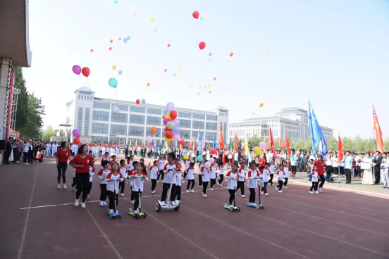 整个方队分为五个小队。一是幼儿园小朋友方队,他们踩着滑板车,走在方队的最前列。二是医护人员方队。他们由校医院的医护人员组成,身穿白色工作服,展现白衣天使的风采。三是保障维修方队。他们来自动力保障和维修服务一线,蓝色的工作服,传达了他们保障服务的决心的担当。四是干部职工方队。他们来自13个科室,由32名干部职工组成。五是服务公司方队。他们来自餐饮公司、物业公司、绿化公司等各服务公司,他们高举“服务无止境,永远在路上”的牌子,表达了服务学校、服务师生的理念。