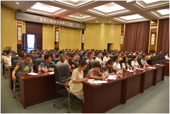 2017年7月4日下午2:30,总务后勤处在龙子湖校区第四报告厅召开全体职工大会,会议由副处长武玉敬主持。