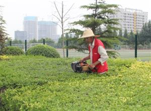 绿化养护忙。绿化养护人员对各区域的绿化进行了全方位整顿,包括对校园各区域草坪进行浇水、杂草的拔除、枯草的清理;对草坪、绿篱进行割草修整,对树木进行养护等工作。