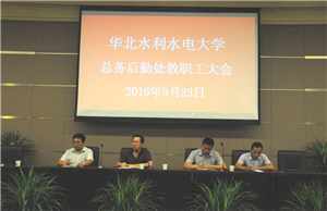 2016年9月23日下午3:00,总务后勤处教职工大会在龙子湖校区第四报告厅召开。会议由尹彦礼书记主持。