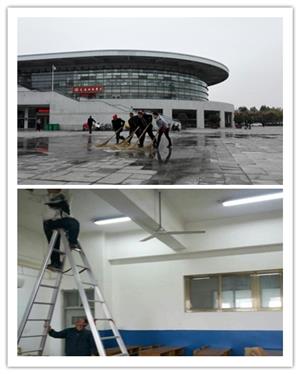 本次环境集中整治时间紧、任务重、压力大,为了确保任务完成,动员会之后,总务后勤处全体职工每天7:00到岗,处领导按照分工,对新老校区的每一个角落都进行了巡查,发现问题立即解决。王清义书记、刘文锴校长等校领导对校园环境综合治理工作进行不间断地分组检查。同时,教务处、宣传部及各相关学院对各自存在的问题分别进行集中报修。我处按照各部门的职责分工,分解任务,有序落实。困难之处是21号专家进校,20号下午还有部门送交维修单,压力之大,可想而知。但是,学校的任务就是命令,我们必须坚决完成。