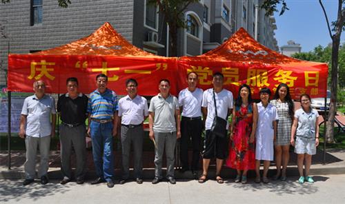 为庆祝建党94周年,7月1日上午9:00,总务后勤处第三党支部在龙子湖校区教工周转房小区门口开展了“践行三严三实 庆七一党员活动日”活动。第三党支部的全体党员及干部参加了此次活动。