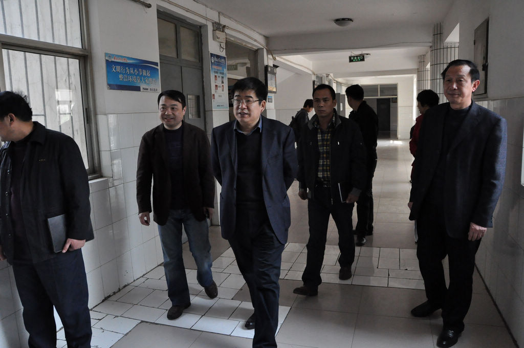 苏处长一行从后勤楼出发,先后查看了南苑餐厅、冷库、开水房、商铺、教学楼、行政楼、北苑餐厅和学生公寓楼等重点区域,并针对道路排水、校园绿化、草坪治理、卫生保洁、节能减排和安全生产等问题进行了现场研究,相关科室负责人分别从自身职责和业务角度做了工作汇报。在听取汇报后,苏处长结合现场发现的一些问题,提出了具体整改要求,并作了详细工作部署。