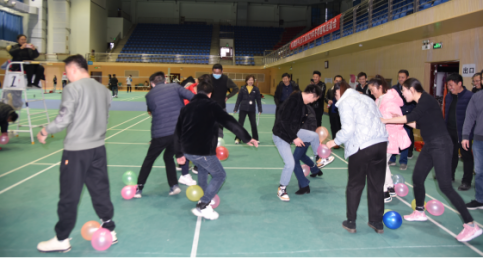 此次趣味运动会分为夹球接力、托球接力、手足情深、踩气球四项活动。活动现场,后勤职工配合默契、动作迅速、奋力拼搏,欢呼喝彩声此起彼伏。踩气球项目将运动会推向高潮,展现了后勤教职工的风采,进一步增强了团体内部的凝聚力。