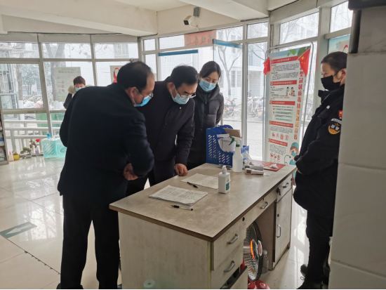 在校医院值班室,李权才一行检查了校医院值班情况。李权才要求校医院做好防疫物资储备,确保常态化疫情防控下物资储备要求,落实好疫情应急处置预案相关要求。
