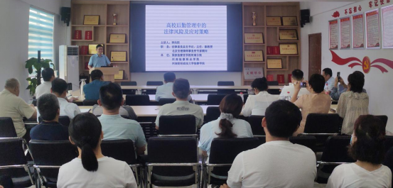 本次培训邀请河南检察职业学院法律系党总支书记、主任李向阳副教授做了题为“高校后勤管理中的法律风险及应对策略”的专题讲座。