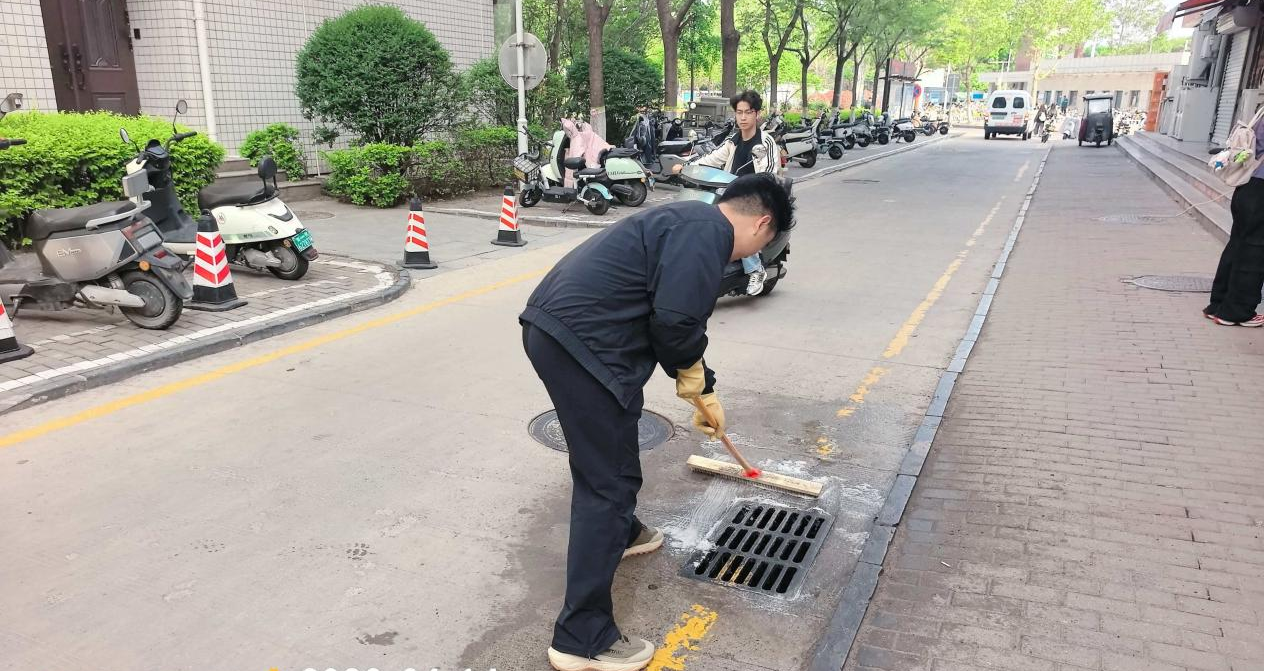 中建七局城市投资运营管理有限公司物业在原有服务区域基础上进一步扩大服务面积,为师生提供舒适温馨的生活环境。公司采用机械化设备对外围道路特别是重油污的下水道口进行深度清扫,使各区域卫生焕然一新。对路边垃圾箱、广告牌进行细致清理,对宿舍楼周边垃圾、杂草定点清除,切实提升区域环境。