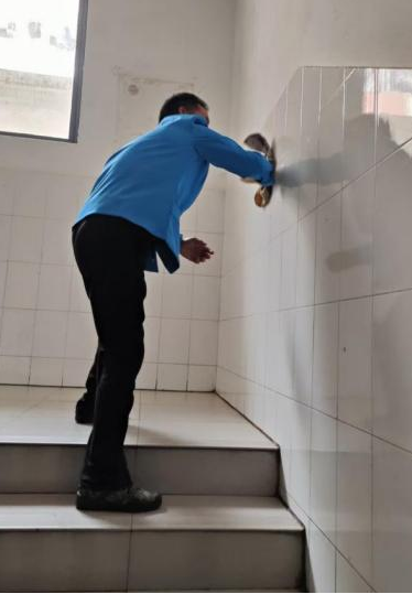 郑州海天物业管理有限公司第一时间组织全员学习内部奖惩规则、在岗工作规范等管理制度,明确工作纪律、细化岗位职责,将严格管理机制贯穿工作全过程。在每栋宿舍楼门口统一配置放餐架、置物货架;在宿舍楼出入口地面铺设防滑地毯。保洁工具统一张贴标识标签,按功能分类,定点摆放,做到专人管理,取用规范。