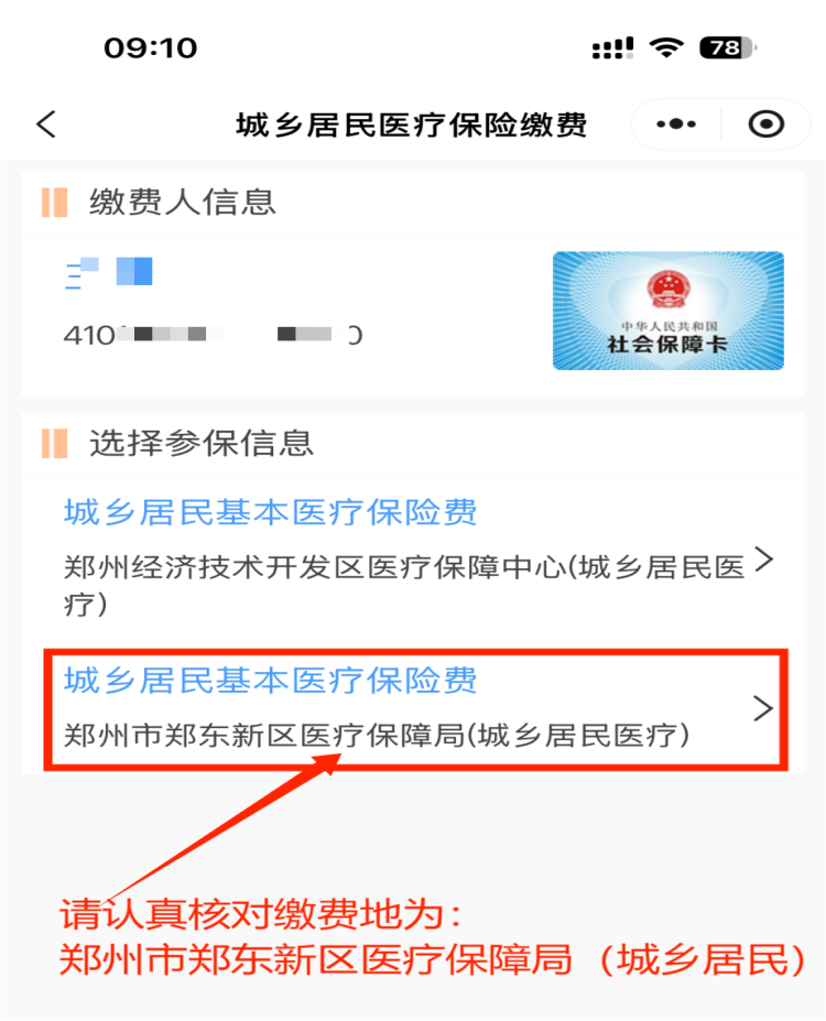 2.缴费时请仔细核对缴费地,确认是否为“郑州市郑东新区医疗保障局(城乡居民医疗)”;若存在多个缴费地选项,须选择“郑州市郑东新区医疗保障局(城乡居民医疗)”进行缴费。