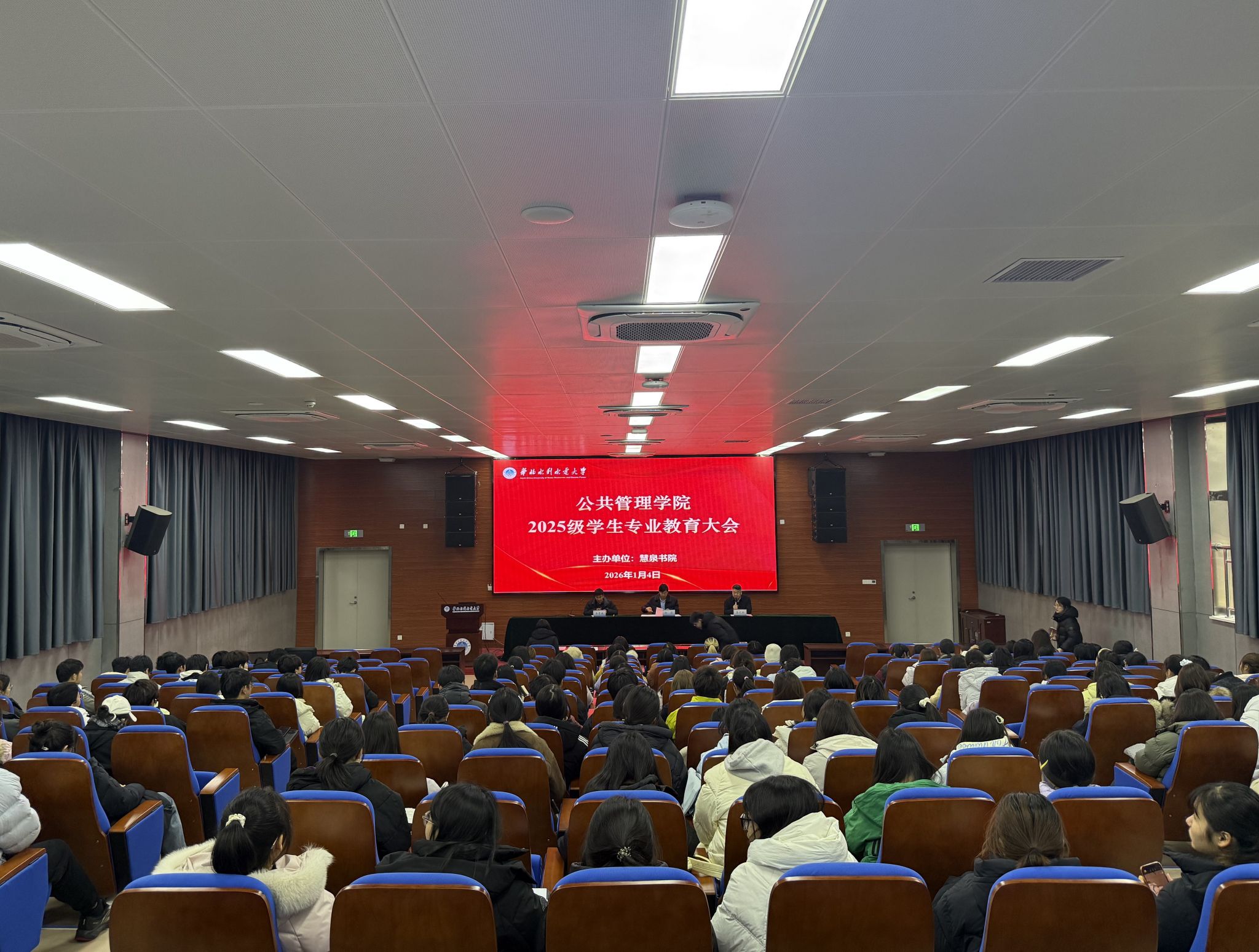 在行政管理、劳动与社会保障专业教育大会上,何芹以“认清形势 肩负使命 提升素质 成长成才”为主题,深入剖析了新时代背景下公共管理学科的发展机遇与责任。李贵成围绕“解读六个核心问题,读懂公共管理学院”主线,为学生作了专业解读。龚之冰在总结中鼓励学生们用心深耕“六业”——规划学业、精进专业、了解行业、合理就业、探索职业、成就事业,将个人理想融入国家发展大局,奋力书写挺膺担当的青春篇章。