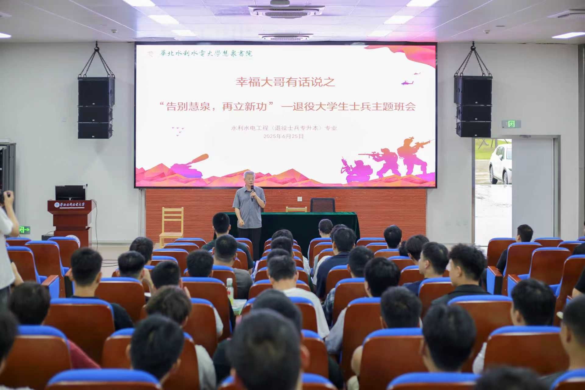 6月25日,慧泉书院在第三报告厅举行特殊班会,为即将转段至水利学院的退役大学生士兵温情送别。书院院长李幸福出席并讲话,学生代表于江涛发言。