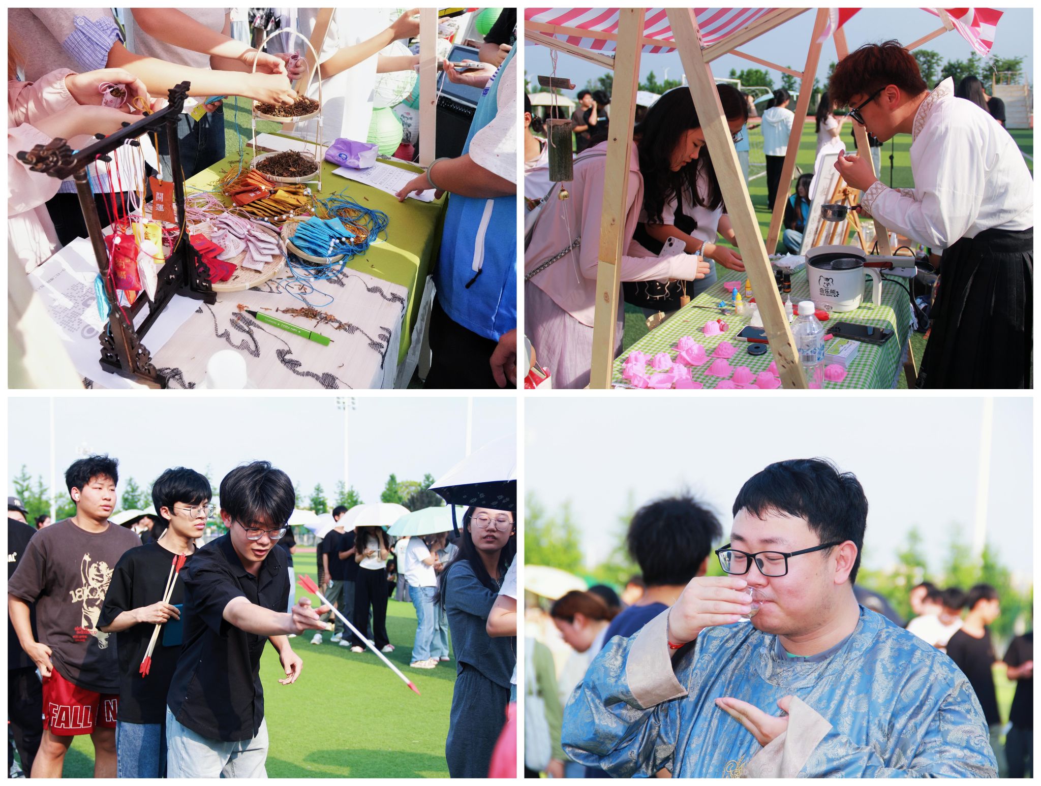 活动以沉浸式文化体验为核心,设置六大特色环节。在华裳雅韵汉服体验区,备有多种形制考究的汉服妆造供师生换装体验,古典场景打卡点前人流如织,师生身着华服沉浸式感受传统服饰之美;匠心独运茶艺香包DIY区,茶香与香料交织,参与者摩肩接踵,争相挑选香料制作专属香包;趣味投壶茶礼体验区重现古代宴饮礼仪雅趣,参与者以三支箭矢挑战投壶竞技,赢定制茶礼,在欢乐竞技中感受传统文化的独特魅力。此外,茶韵匠心茶皂DIY、集章品茗文化之旅、茶韵诗声诗歌朗诵等环节亦亮点纷呈,各区域熙来攘往,现场欢声笑语不断,尽显传统文化与青春活力交融之美。