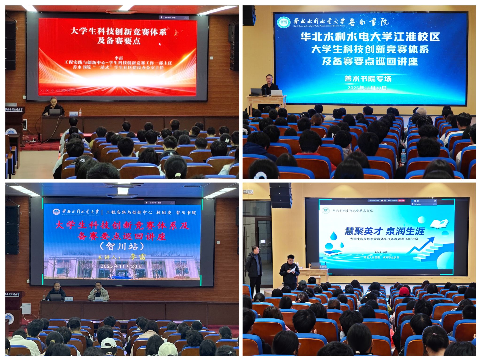 为深化创新创业教育改革,提升学生科技创新能力,帮助学子系统掌握竞赛体系与备赛要点。近期,由工程实践与创新中心、校团委联合主办,善水书院、清源书院、智川书院、慧泉书院共同承办的“大学生科技创新竞赛体系及备赛要点巡回讲座”在江淮校区举办。讲座覆盖电气工程及其自动化、数学与应用数学、计算机科学与技术、人工智能等多个专业,累计吸引千余名学生积极参与,有效提升了学生的参赛积极性。