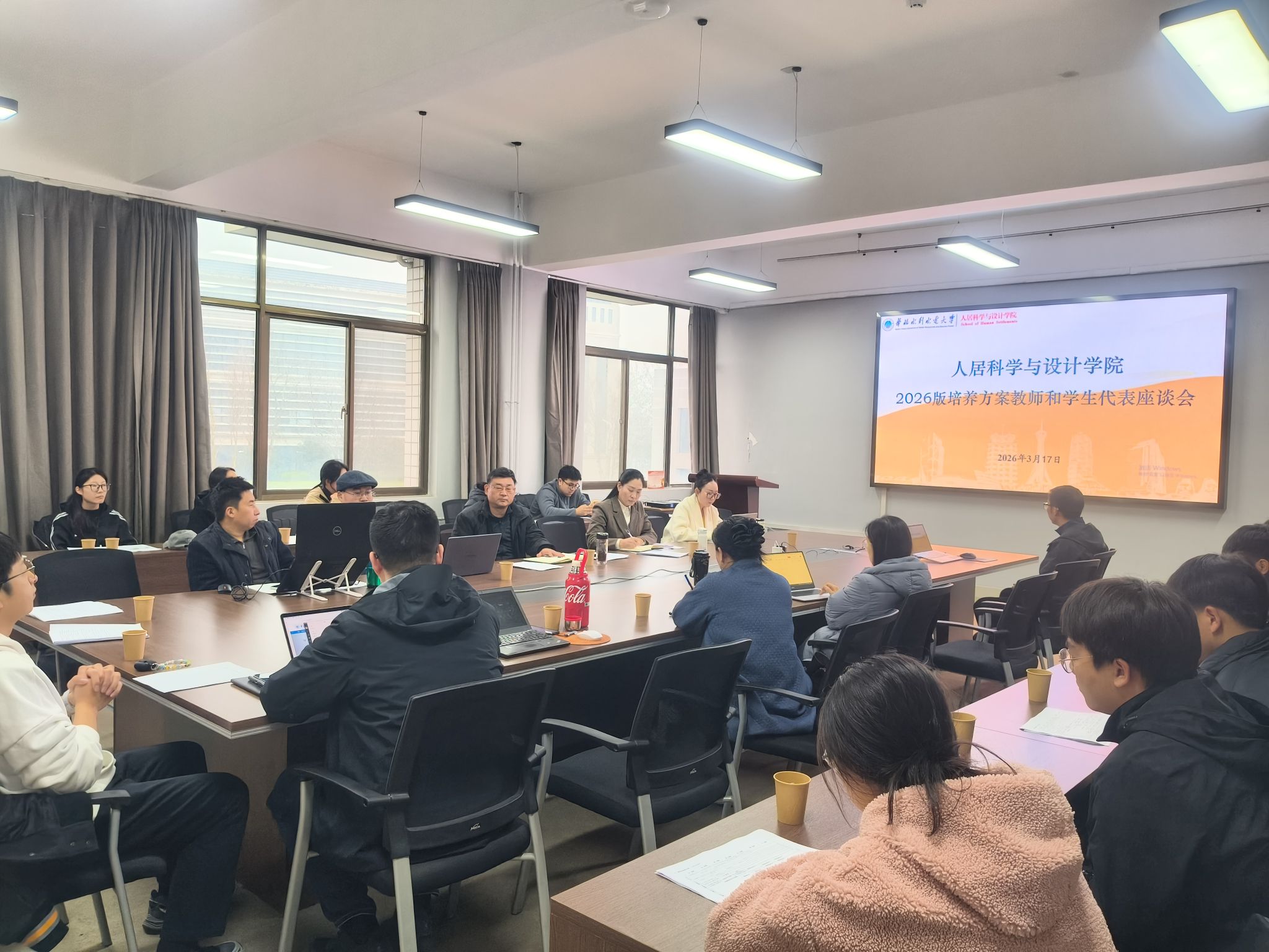 为扎实推进 2026 版本科专业人才培养方案修订完善,充分吸纳师生意见、凝聚育人共识,2026年3 月 17 日,人居科学与设计学院召开 2026 版本科专业人才培养方案教师与学生代表座谈会。我院张少伟院长、郝丽君副院长、各教研室负责人、骨干教师及各专业学生代表参会,会议围绕方案解读、意见交流、育人提升等议题深入研讨,郝丽君副院长主持会议。会上,各专业教研室负责人依次对 2026 版人才培养方案进行全面、细致、深入的介绍...