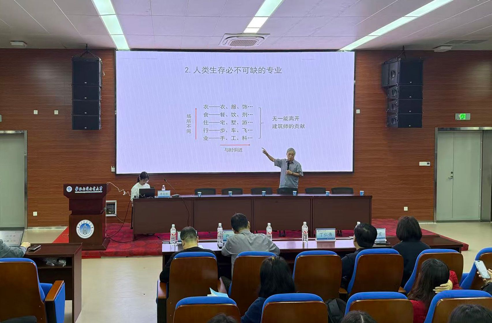 9月29日上午,人居科学与设计学院在江淮校区第一报告厅隆重举行2025级新生专业教育大会。会议特邀我国著名建筑师、全国建筑学专业教育评估委员会原副主任、北京淡士伦建筑师事务所董事长曹亮功先生出席,善水书院、人居学院领导、各专业负责人、新生学业导师以及全体2025级新生齐聚一堂,共同开启了大学阶段的专业启蒙第一课。本次大会旨在帮助新生深入理解建筑学、城乡规划、风景园林、人文地理与城乡规划四个专业的学科内涵与时代使命,引导学生筑牢专业认知基础,树立职业理想。