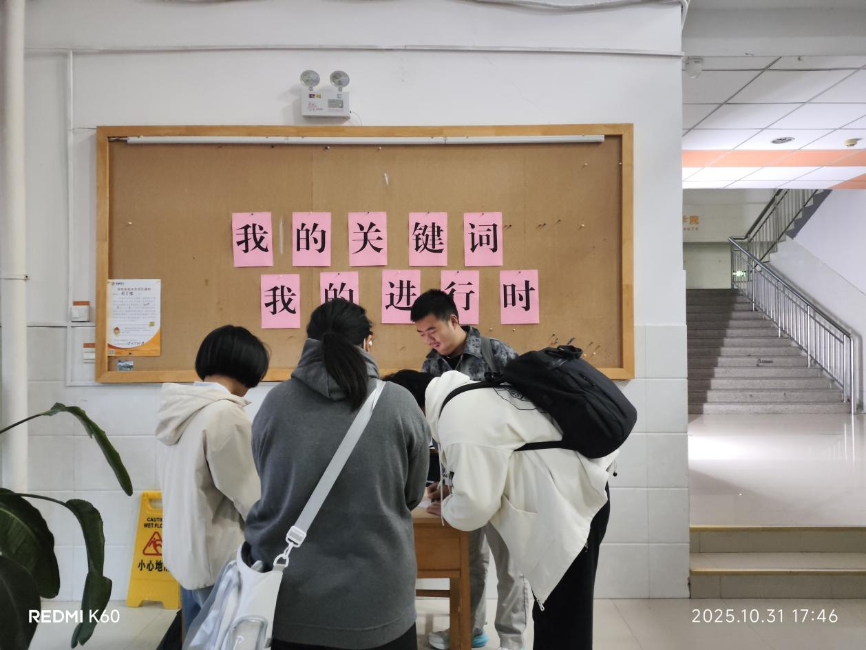 岁末年初的时光节点,总能唤醒人们对过往的回望与对未来的期许。近日,人居科学与设计学院的“我的关键词,我的进行时”互动展在人居科学与设计学院门口温情落幕。本次活动在词语的交界处,看见成长的轨迹"为主题,为全院全日制本科生搭建了一个低门槛、高共鸣、强仪式感的情感表达平台,吸引众多学子踊跃参与,用凝练的词语镌刻青春印记。活动现场布置简洁而富有温度,醒目的打卡区与错落有致的展示墙营造出浓厚的参与氛围。在...