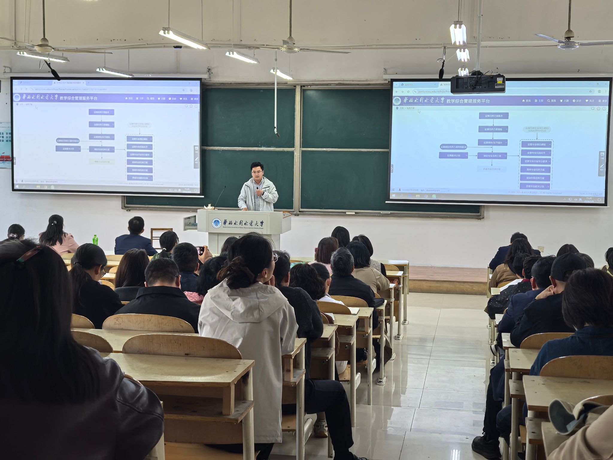 为深入贯彻落实教育数字化转型要求,全面提升教学管理队伍的数字素养与业务能力,4月9日下午,由教务处组织的“数智赋能教学平台系列培训”在龙子湖校区教学楼5101顺利举行。各学院分管教学副院长、系(教研室)主任、教学办主任、负责培养方案工作的教学办人员、课程负责人及教务处相关工作人员参加培训。