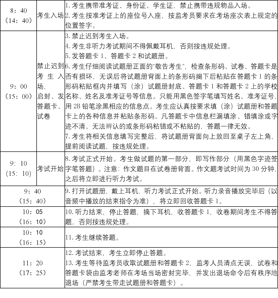 7.英语考试流程(上午时间为四级,下午时间为六级):